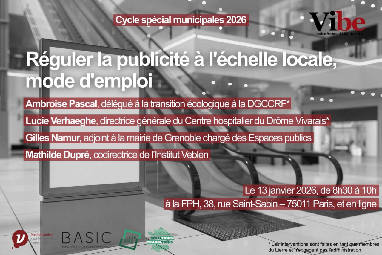 L’Institut Veblen, le BASIC et Le Lierre ont organisé mardi 13 janvier 2026 un petit-déjeuner Vibe intitulé « Réguler la publicité, mode d’emploi ». Cet événement s’inscrivait dans le cadre de notre cycle consacré au pouvoir des communes et intercommunalités, à l’occasion des élections municipales des 15 et 22 mars.
